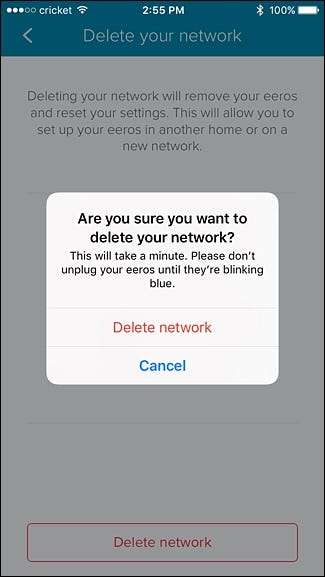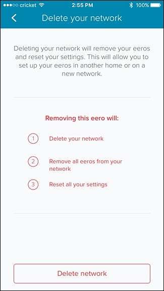 Esta é talvez a maneira mais rápida e fácil de redefinir todo o seu sistema Eero, e ela limpa tudo completamente para que comece do zero.