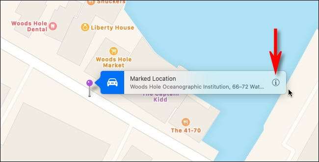 Na bolha "Localização marcada" que aparece ao lado do pino do mercado, clique no botão "Info" (que se parece com uma minúscula "i" com um círculo em torno dele).