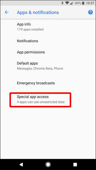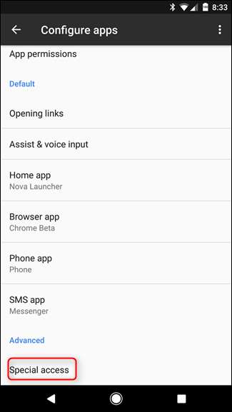 Isso revela opções adicionais, a última das quais é a opção “Acesso a aplicativo especial”. Vá em frente e toque nisso.