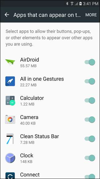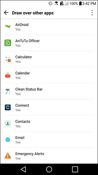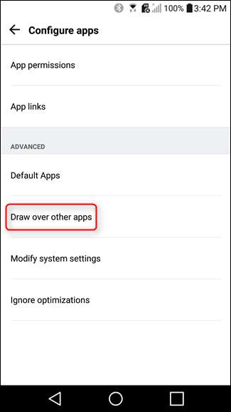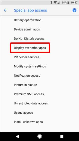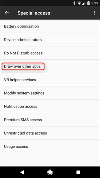 A partir daqui, ele deve funcionar exatamente como o Android padrão - toque na opção “Desenhar sobre outros aplicativos” e você se encontrará onde precisa estar.
