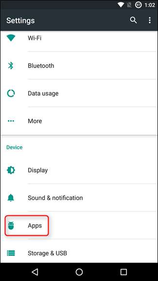 De lá, desça até “Apps” e toque no ícone de engrenagem no canto superior direito.