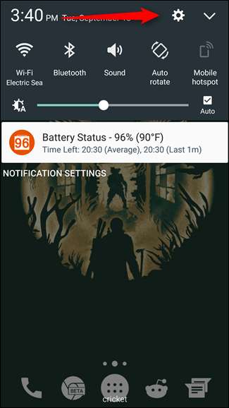 Primeiro, puxe a aba de notificação e toque no ícone de engrenagem para abrir as configurações.