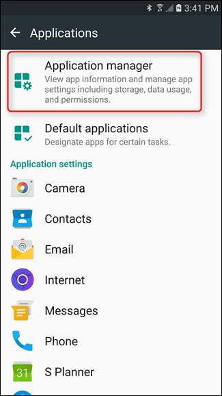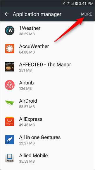 A partir daqui, toque no link “Gerenciador de aplicativos” e, em seguida, no botão “Mais” no canto superior direito.