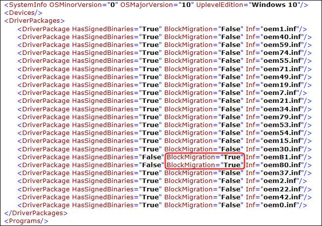 Por exemplo, para encontrar drivers que não são compatíveis, procure em “DriverPackages” as linhas que incluem: