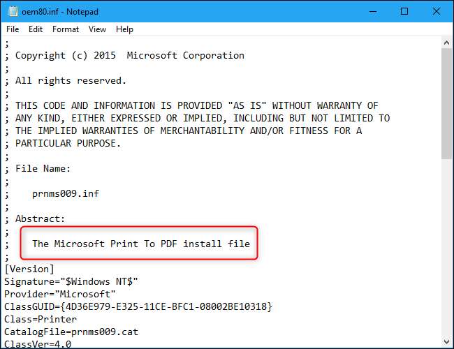 Em nosso caso, descobrimos que oem80.inf era “O arquivo de instalação do Microsoft Print To PDF” e oem81.inf era “O arquivo de instalação do Microsoft XPS Document Writer”. Em outras palavras, o próprio XPS e Drivers de impressora PDF —Parte do próprio Windows 10 — estão bloqueando o processo de instalação por algum motivo.