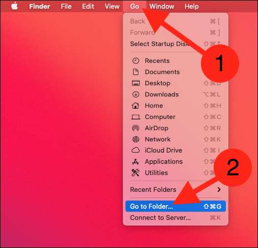 Em seguida, com uma janela do Finder aberto, clique na guia "GO" na barra de menus na parte superior da tela. A partir daí, selecione a opção "Ir para pasta".