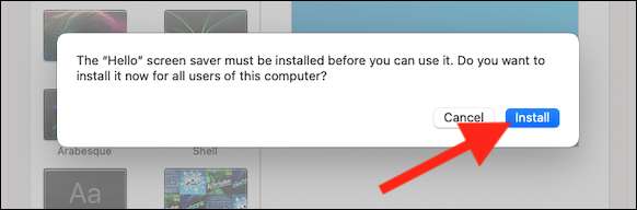 Agora você pode clicar duas vezes no arquivo Screen Saver. Uma mensagem aparecerá perguntando se você gostaria de instalá-lo no seu computador. Selecione o botão "Instalar".