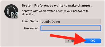 Como você está instalando algo e fazendo alterações no seu computador, você precisará se autenticar de forma segura. Fazer isso digitando a senha do seu Mac ou Usando seu relógio da Apple (Se você configurou esse recurso). Clique em "OK" para concluir o processo de configuração.