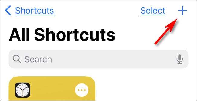 Primeiro, abra o aplicativo Atalhos. Se você não consegue encontrá-lo, deslize para baixo com um dedo na tela inicial e digite "atalhos" na caixa de pesquisa. Toque no ícone "Atalhos" quando você o vir nos resultados.
