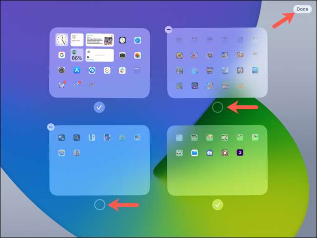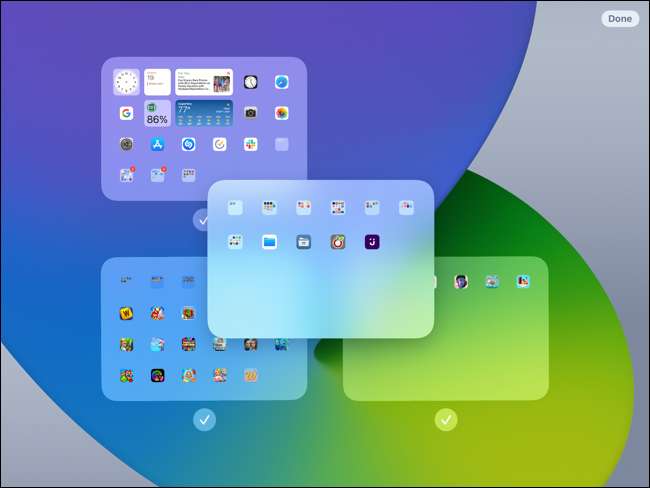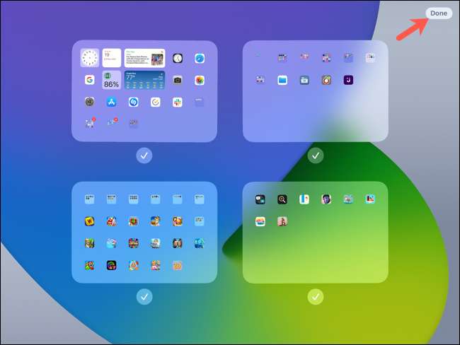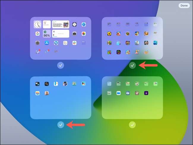 então você vai ver todas as suas telas de iPads em um ponto. Cada um deve ter uma marca de verificação abaixo dela. Estes indicadores significa que você pode ver essas telas quando você swipe.