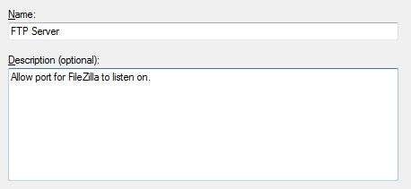Clique em avançar três vezes após inserir o número da porta. Insira um nome e uma descrição para essa exceção para que seja fácil encontrá-la no futuro e clique em Concluir.