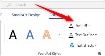 No grupo "WordART Styles" da guia "Formatar" que aparece, clique na opção "Preenchimento de texto".