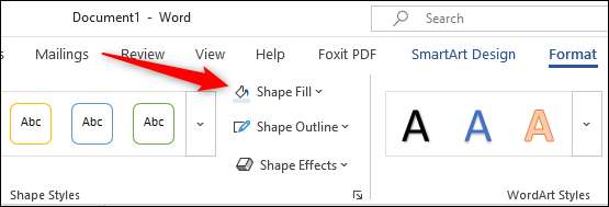 Em seguida, você precisará remover o fundo do gráfico SmartArt. Selecione a caixa e, no grupo "Estilos de forma" da guia "Format", clique em "Folha de forma".