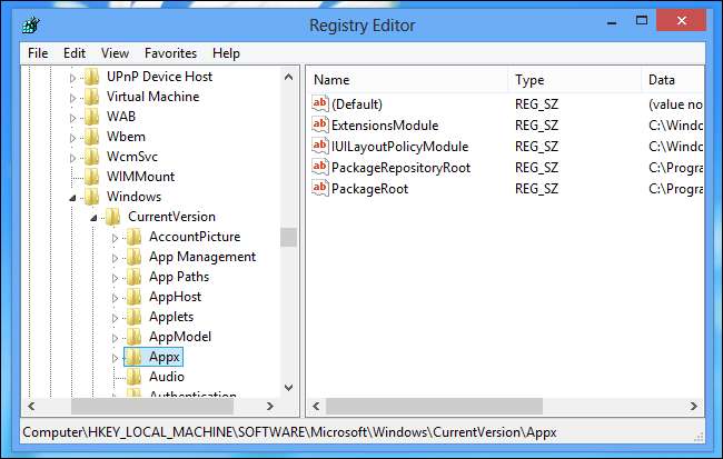 Navegue até a chave HKEY_LOCAL_MACHINE \ SOFTWARE \ Microsoft \ Windows \ CurrentVersion \ Appx.