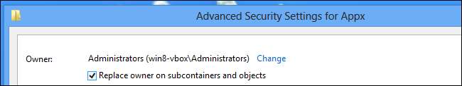 Habilite o Substitua o proprietário em sub-recipientes e objetos caixa de seleção e clique em OK.