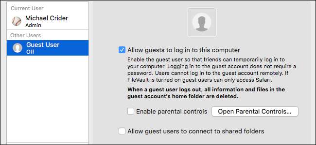 Em um Mac, você pode fazer login como usuário convidado, selecionando a conta do usuário convidado na tela de login. Se esta opção não estiver disponível, você terá que ativá-la.