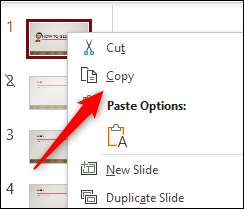 Em seguida, copie o slide para sua área de transferência usando o atalho de teclado CTRL + C (CMD + C no Mac) ou clicando com o botão direito do mouse no slide e selecionando "Copiar" no menu de contexto.