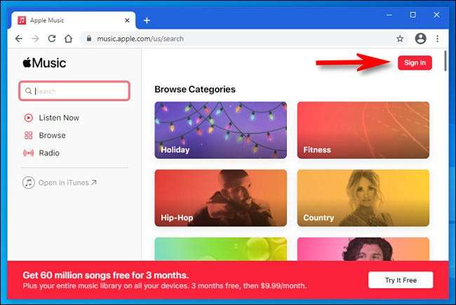A Apple criou um reprodutor de música baseado na Web com uma interface semelhante a iTunes. e o aplicativo de música que é executado diretamente no seu navegador. Para usá-lo, simplesmente abra seu navegador favorito e visite music.apple.com. para começar.