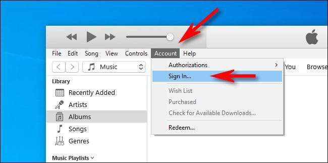 Depois de instalado, abra "iTunes" e selecione Conta & GT; Entre no menu.
