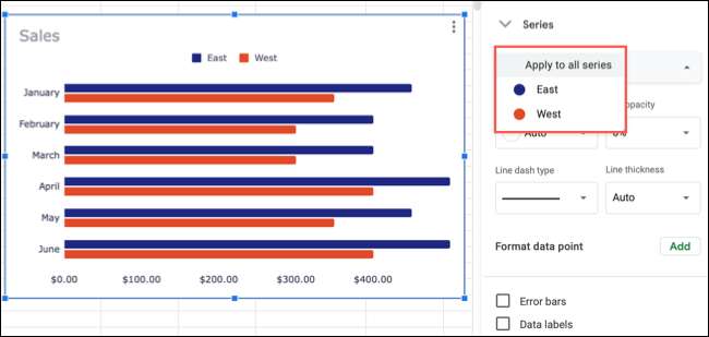 Expanda a seção da série na barra lateral. Em seguida, clique na lista suspensa Aplicar para toda a série e escolha a série que você deseja alterar.