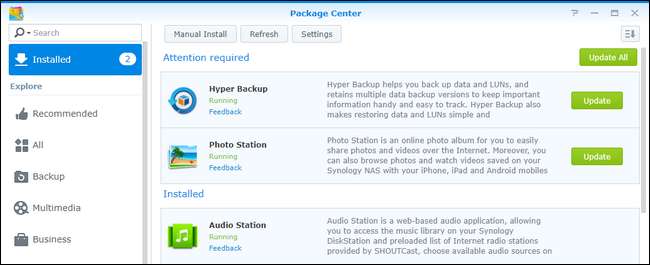 Quer você opte por seguir um método manual estrito ou combinar atualizações completas (ou semi) automatizadas, é fácil ficar por dentro das atualizações de pacote graças ao gerenciador de pacotes simplificado da Synology.