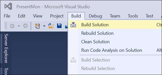 Quando terminar de baixar e instalar o software necessário, você pode abrir o arquivo PresentMon.sln no Visual Studio e construir o aplicativo. Basta clicar em Build> Build Solution para criá-lo.