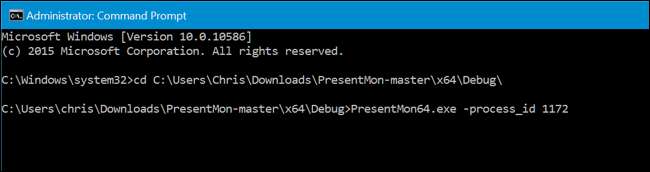 cd C: \ path \ to \ PresentMon-master \ x64 \ Debug