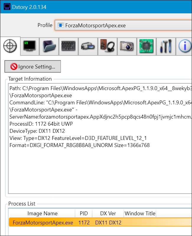 Você também pode voltar para o aplicativo Dxtory para ver mais informações e personalizar suas configurações. Mas você não precisa fazer nada de especial para configurar isso - abra o Dxtory, inicie um jogo UWP e ele simplesmente funcionará. Se você quiser se livrar do contador FPS, basta fechar o aplicativo Dxtory.