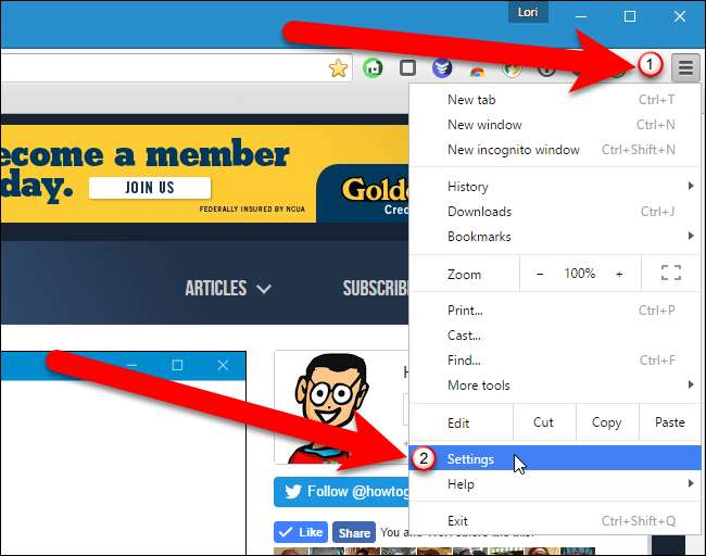 Abra o Chrome e, em guias separadas, visite as páginas da web que deseja abrir automaticamente ao abrir o navegador. Em seguida, clique no botão de menu do Chrome (três barras horizontais) no canto superior direito da janela e selecione “Configurações” no menu suspenso.