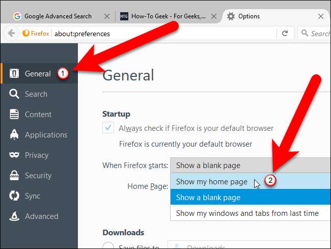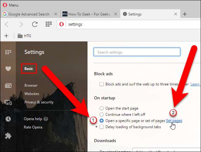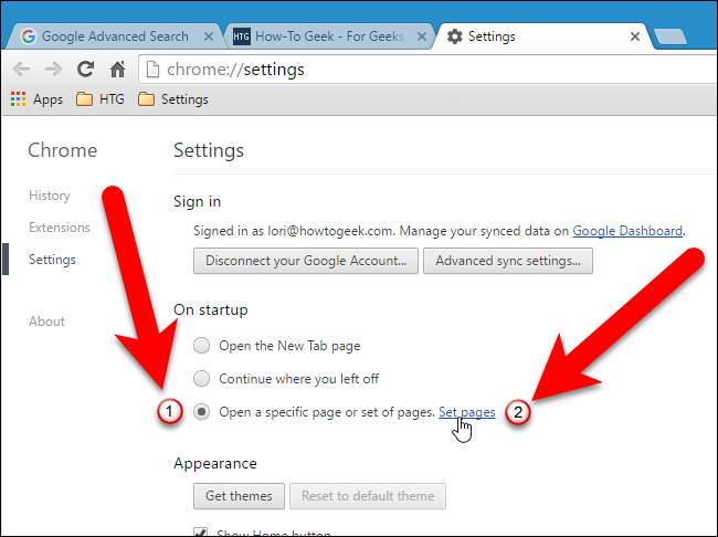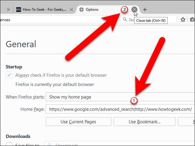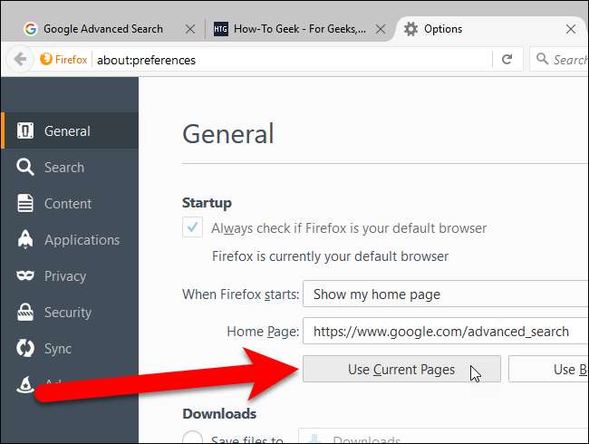 Por exemplo, queremos visitar o How-To Geek e a página de pesquisa avançada do Google sempre que abrirmos nosso navegador, então vamos configurar cada navegador para abrir esses dois sites automaticamente.