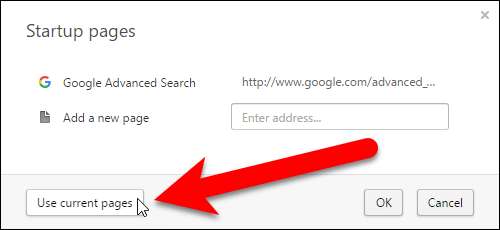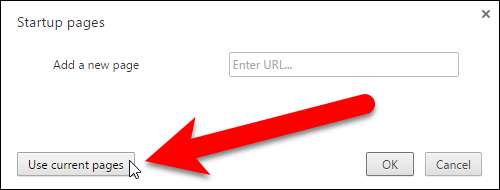 Na caixa de diálogo Páginas de inicialização, clique em “Usar as páginas atuais”.
