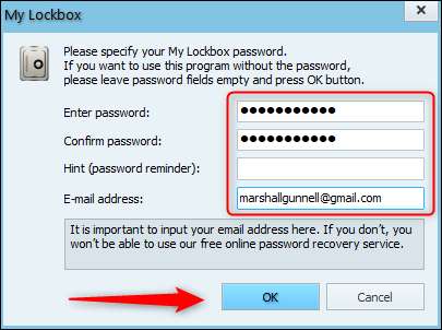 Para abrir o aplicativo, inicie meu Lockbox e insira a senha. Clique OK."