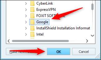 Navegue até a pasta que contém o aplicativo que você gostaria de bloquear, clique nele para selecioná-lo e clique em "OK". Neste exemplo, vamos selecionar a pasta que contém o Google Chrome.