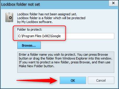 Confirme o caminho do arquivo na caixa "Pasta para proteger" e clique em "OK".
