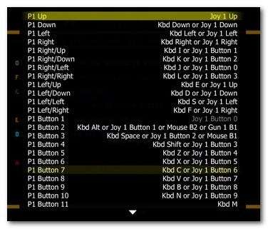 Se você quiser mexer com as combinações de teclas dentro do MAME (seja para alterá-las ou gravá-las para que você possa mapeá-las com XPadder ou outro aplicativo auxiliar), você só precisa pressionar Tab -> Entrada (geral ou este jogo dependendo de qual que você deseja alterar) -> Jogador 1.