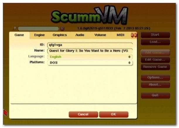 Agora você verá uma entrada para o seu jogo na interface principal do ScummVM como: