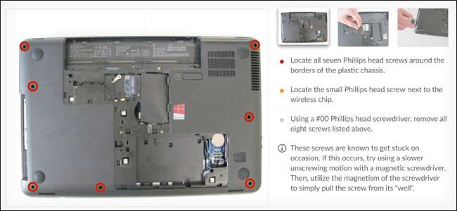 Se você não conseguir encontrar um manual de serviço - o que é uma possibilidade distinta, especialmente com projetos mais recentes - não desista Você ainda pode encontrar um guia do usuário final sobre como desmontar seu modelo específico de laptop. O YouTube é um bom lugar para pesquisar, assim como o site de reparos iFixIt , que hospeda guias de desmontagem para muitos modelos. Se possível, você deseja encontrar algum tipo de referência visual para o seu laptop antes de prosseguir para a próxima etapa.