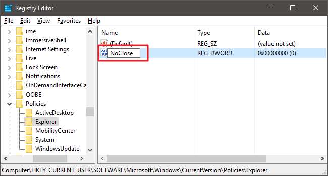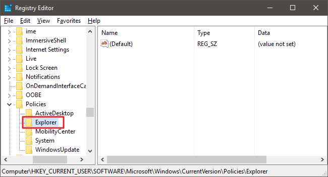 HKEY_CURRENT_USER \ Software \ Microsoft \ Windows \ CurrentVersion \ Policies \ Explorer