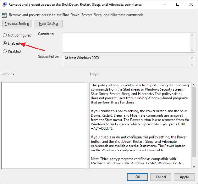 Para testar as alterações, saia do Editor de Diretiva de Grupo Local, reinicie o computador e faça logon como o usuário (ou membro do grupo de usuários) para quem você fez as alterações. Se você deseja reativar o desligamento, basta seguir estas mesmas instruções e definir a política de volta para Desativado (ou Não Configurado).