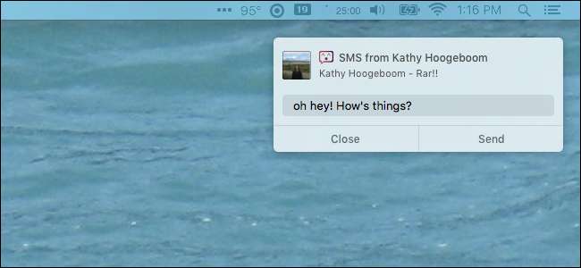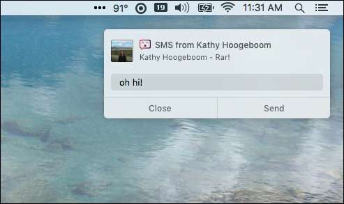 O sempre popular Pushbullet pode fazer isso , mas não há uma versão Mac nativa do Pushbullet. Isso significa que as notificações são enviadas por meio de um plug-in do navegador, que geralmente é feio e não oferece a capacidade de responder a partir da notificação em si - é necessário abrir o plug-in do navegador ou a página da web.