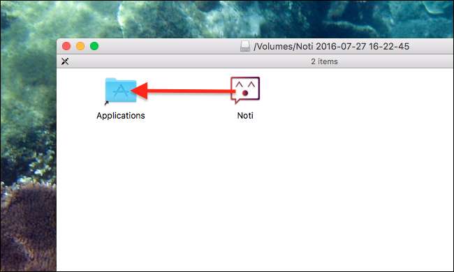 Dirigir a Noti.center e baixe o arquivo DMG. Abra-o e arraste Noti para a pasta Aplicativos (você sabe, a música e dança de arrastar de ícones de costume).