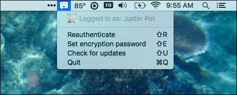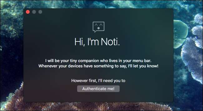 Depois de fazer isso, você encontrará um ícone para Noti na barra de menus do seu Mac. A partir daqui, você pode inserir uma senha de criptografia, supondo que você a configurou em seu dispositivo Android, e verificar se há atualizações.