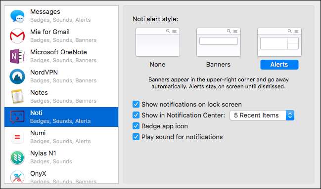 Não há como mudar isso dentro do próprio Noti, mas você pode configurar as notificações do seu Mac se você souber onde procurar. Vá para as Preferências do Sistema do seu Mac e, em seguida, para “Notificações”.