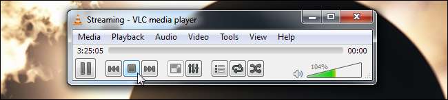 O VLC irá informá-lo de que está “transmitindo” sua área de trabalho para um arquivo. Use seu computador normalmente e o VLC gravará sua área de trabalho. Quando terminar, clique no botão Parar.