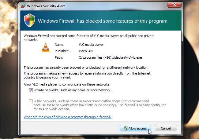 Clique no botão Stream e pode ser solicitado que você conceda acesso ao VLC por meio do firewall. Dependendo do seu método de streaming, você também pode precisar encaminhar portas se quiser fazer streaming pela Internet. Por exemplo, se você adicionar o método de streaming HTTP, verá que ele usa a porta 8080 por padrão. Confira nosso guia para encaminhamento de porta para obter mais informações sobre o encaminhamento de portas.