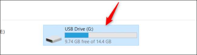 Para começar, certifique-se de que o seu computador detecta o dispositivo de armazenamento que você pretende consertar. Insira o seu dispositivo em sua porta apropriada e verifique se o computador o reconhece através do Explorador de arquivos. No exemplo abaixo, uma unidade flash protegida contra gravação nomeada "Drive USB (G :)" é inserida em um computador.
