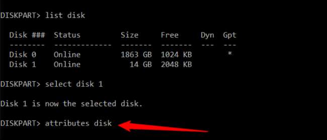 A última coisa que você deve fazer é limpar o atributo somente leitura do seu disco. Limpar significa alternar o estado para "não" para que a proteção de gravação seja desativada. Para conseguir isso, digite o comando