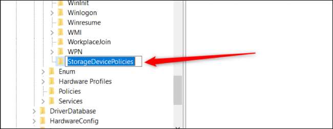 A partir daqui, confirme se existir uma pasta "StorageEvicePolicies". Se sim, então você pode pular o restante desta instrução e prosseguir com o próximo passo. Caso contrário, você precisará criar manualmente a pasta.