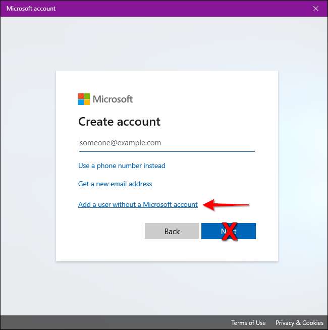 Clique na opção “Adicionar um usuário sem uma conta Microsoft”.
