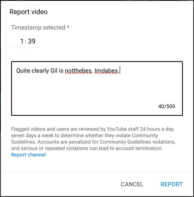 Adicione qualquer informação adicional que explique os problemas com o vídeo e clique em “Relatar”.